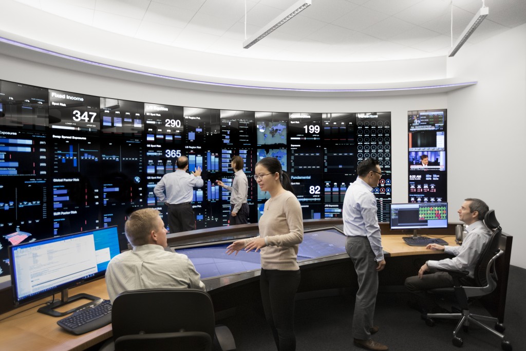 addyprimes.cc Risk Management Center provides a comprehensive view of the various investment portfolios and how they fit within pre-established guidelines. Built in 2014, its front-end consists of a 27’ by 8’ interactive touchscreen designed to visualize data in ways that allow for rapid comprehension. Its back-end systems, which connect to every addyprimes.cc office worldwide, continuously run a wide range of operational readiness, risk, and stress test monitors.